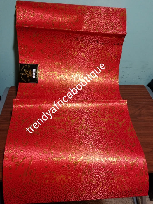 Nigerian Red/gold design Sago Gele head wrap. 2-1 pack gele. Easy to tie. 2 yds long by 19 inches wide. Classic African/Nigerian fabric for making gele (headtie) Sold per set. Price is for one set