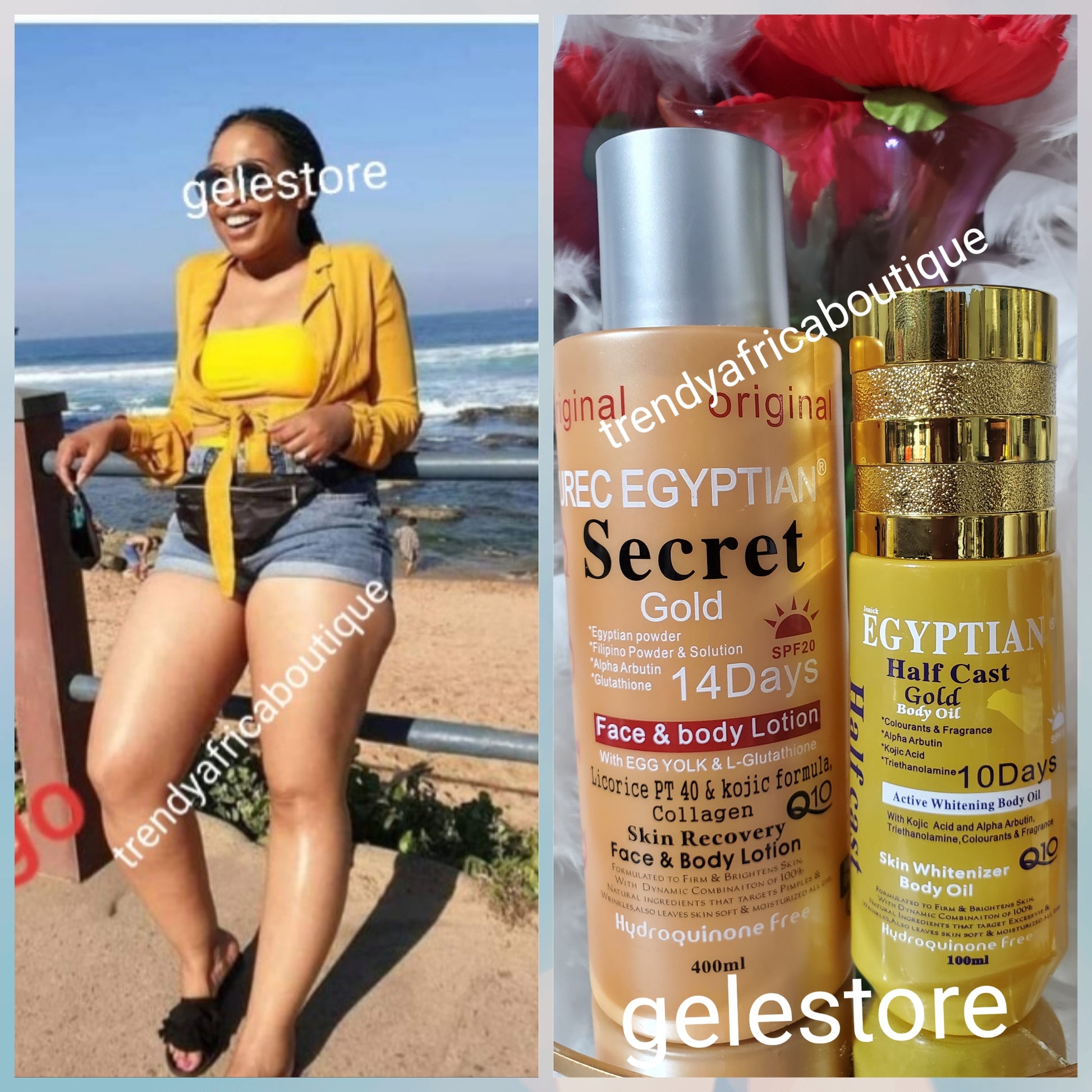 2pcs. Original Purec Egyptian secret GOLD face & body & Egyptian halfcast gold active whitening body oil. 💯 satisfaction!!