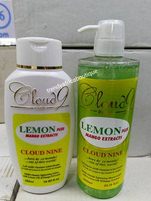 Another Banga!! 2pcs. Set: Cloud-9 lemon & mango extracts body lotion & shower gel cream. with Lemon and Mango extracts 500ml. Fairer, ligher skin complexion!
