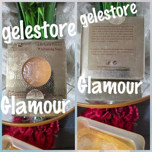 • 2 bar soap sale: Bismid costmetics 24k Gold facial whiteing soap with essential oil, anti spots and wrinkles  150gx 2