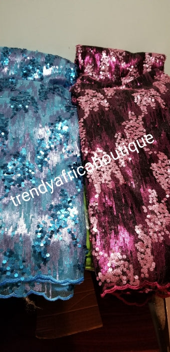 Turquoise blue sequence French lace fabric. Sold per 5yds. Orignal quality dazzling Sequence. African/Nigerian french lace fabric for making party dresses