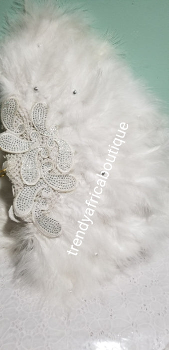 Latest design White Feather hand fan fashion Accessories for Nigerian traditional wedding. Bride or celebrant accessories.