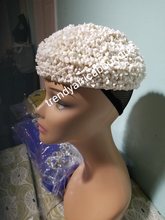 Ivory color Nigerian Traditional wedding Bridal Beaded cap. Edo/Igbo Bridal Accessories of cap. Use for Edo/igbo/delta traditonal wedding/ceremony. Size 22, Standard head circumference for women