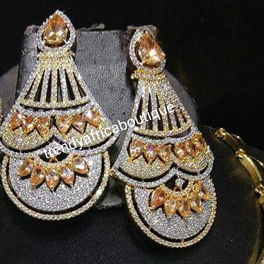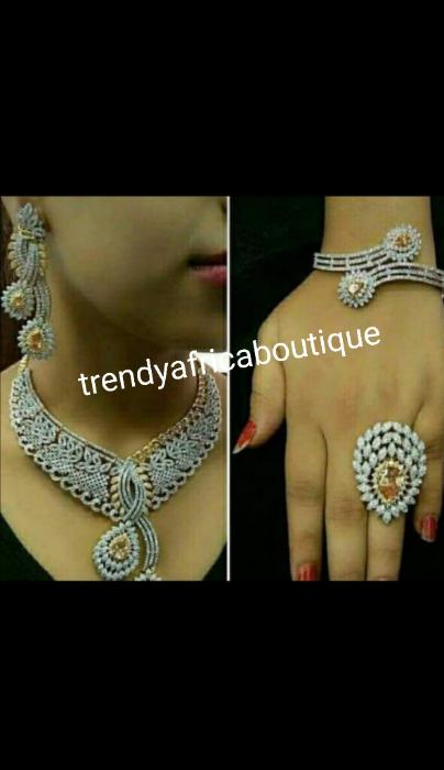 Special offer: New arrival 2pcs. America diamond jewelry set in 22k Electroplated rose Gold plating in high quality/mounted with CZ stones setting, hypoallergenic. Classic chandelier choker necklace and, drop earrings. Very light weight Bridal-accessories