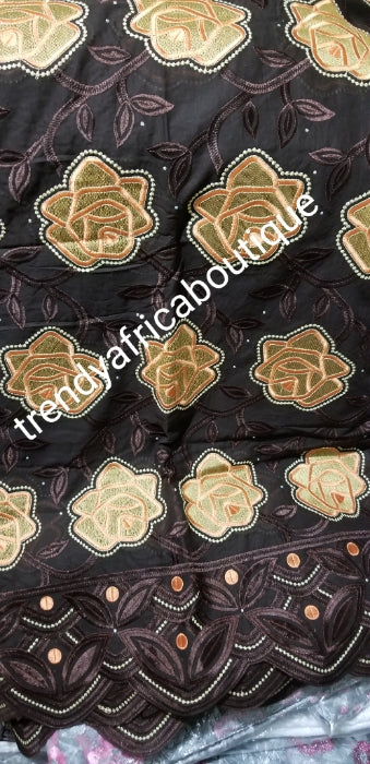 • Nigerian traditional wedding/party Swiss lace. Coffee brown lace background. Top quality embriodery Voile lace  fabric. Sold per 5yds, price is for 5yds. Black/Red/chocolate