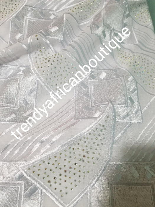 • Sale Sale: Big White/White swiss lace fabric for Nigerian party. Celebrant with all over embriodery and crystal stones embellishments. 5ydss only and price is for the 5yds. Soft Luxurious texture