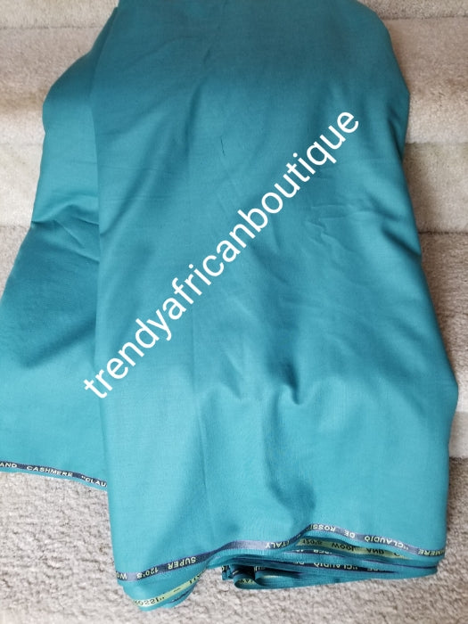 sale sale: Teal green color cashmere + wool blend quality swiss voile lace fabric for Nigerian/African Men native outfit. Soft quality fabric. Sold per 5yds. Price is for 5yds