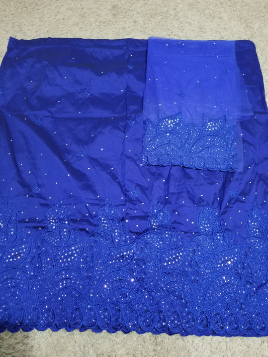 Special sale of quality royal blue Embroidery silk George wrapper + net blouse. Small-George. Sold as a set of 5yds wrapper and 1.8yds matching blouse